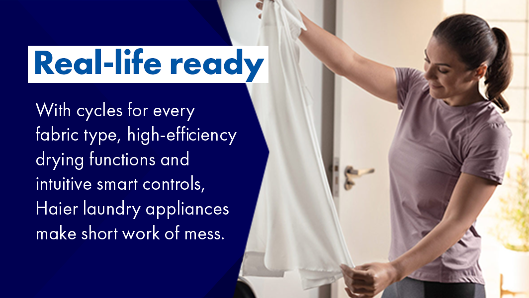 October 10•4 mins readWhen it comes to doing the laundry, the key is to work smarter – not harder. That’s why Haier has created the ultimate set-and-forget laundry appliance. The Haier Laundry Center 12kg/9kg Combo Washer Dryer is an extra-large capacity 2-in-1 that cares for all fabrics, and features Wi-Fi connectivity, so you can start loads from your smartphone – whether you’re in the car or on the couch.