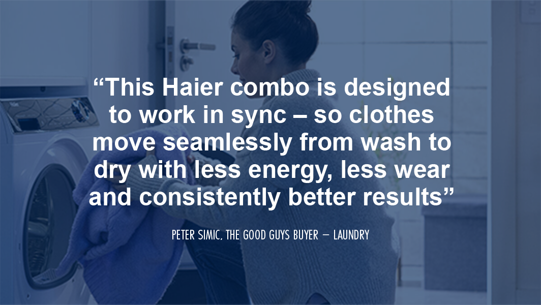 “Everything about the Haier Laundry Centre is optimised to save you time and make doing laundry easier,” says Peter Simic, The Good Guys laundry appliance expert.