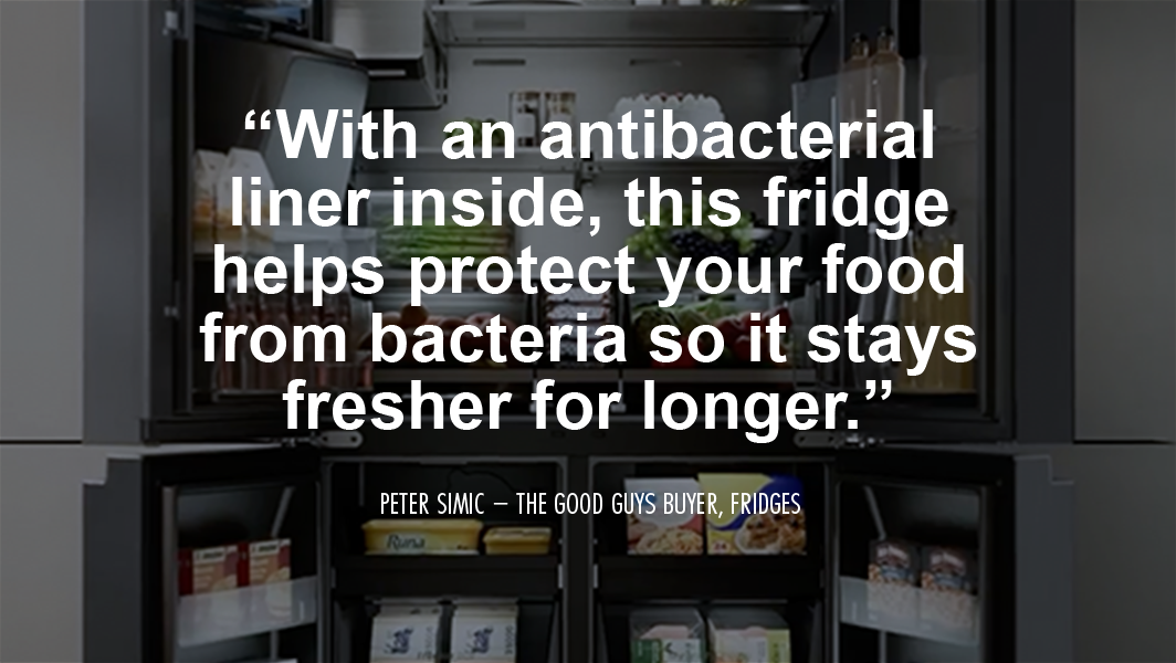 “Between its generous capacity, sleek French door design and smart cooling tech, the Hisense 615L is more than just a fridge – it’s a statement piece,” says Peter Simic, The Good Guys Buyer – Refrigeration.