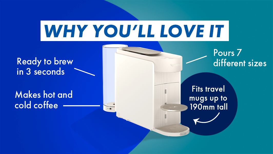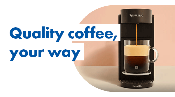 Where style meets the perfect espresso, Nespresso's range of Coffee Machines are here to help you make your perfect brew. From the versatile Lattissima range to the colourful and fun Vertuo line, there will be a Nespresso Coffee Machine to suit you.
