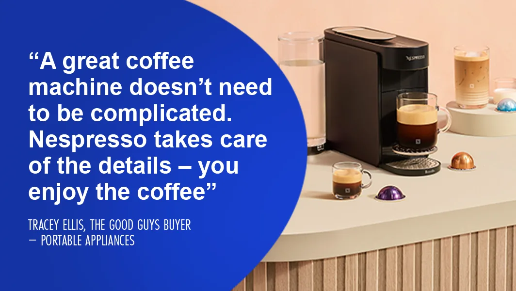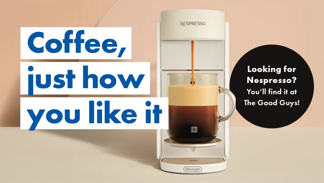 card media link to https://www.thegoodguys.com.au/nespresso/small-kitchen-appliances/coffee-machines-and-beverages/coffee-machines#facet:140136711410197116105115116973280114111,14013671141019711610511511697