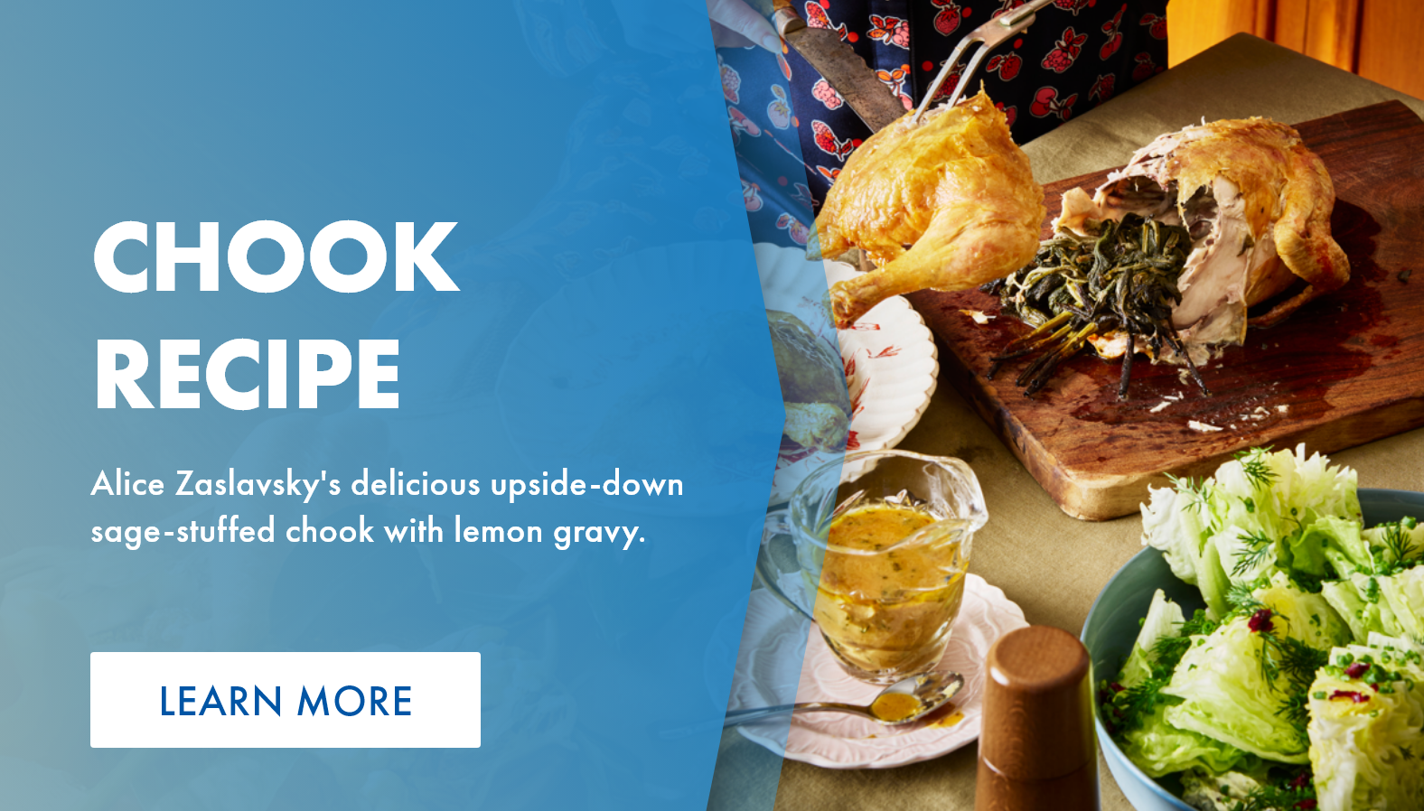 Upside-down sage-stuffed chook with no-cook lemony gravy and upside-down iceberg salad
