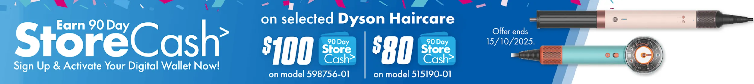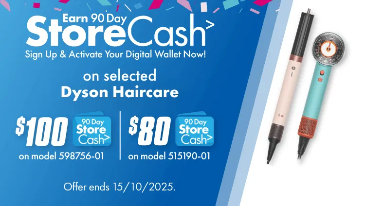>Qualifying conditions, including signing up to 90 Day StoreCash, activating a Digital Wallet before being eligible to earn/win and where a qualifying purchase is required, delivery/collection of product within 60 days. 90 Day StoreCash expires 90 days after issue. Personal purchases only. Exclusions and purchase limits apply. Each 90 Day StoreCash reward must be used in one transaction and no change/credit for any unused balance. Refer to 90 Day StoreCash T&Cs for details, including how to receive 90 Day StoreCash deposit notifications, how to earn & timing for issue of 90 Day StoreCash. Shop all eligible models here.