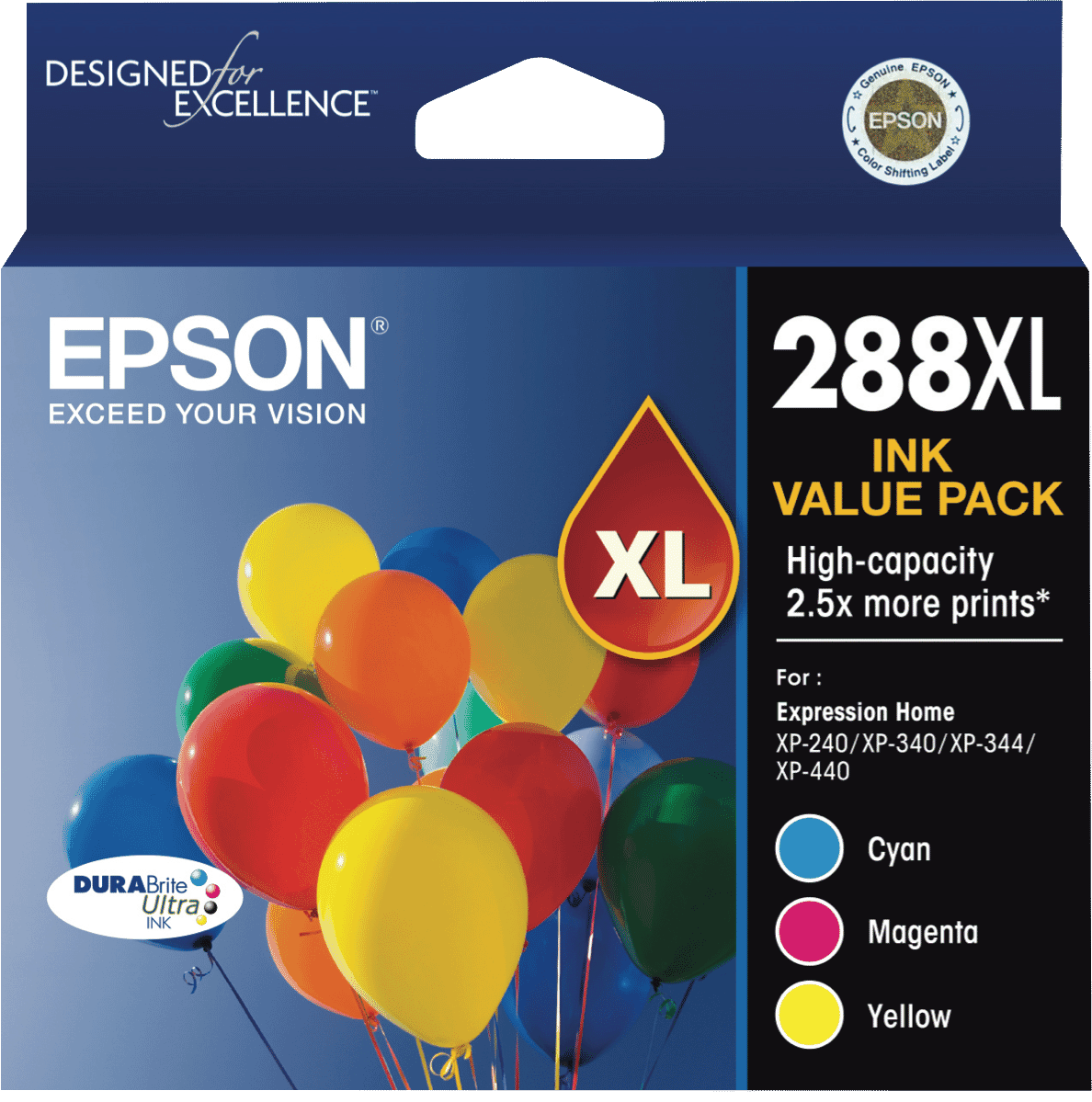 The ink pack is compatible with Epson XP-240, XP-340, XP-344, and XP-440 printer models.