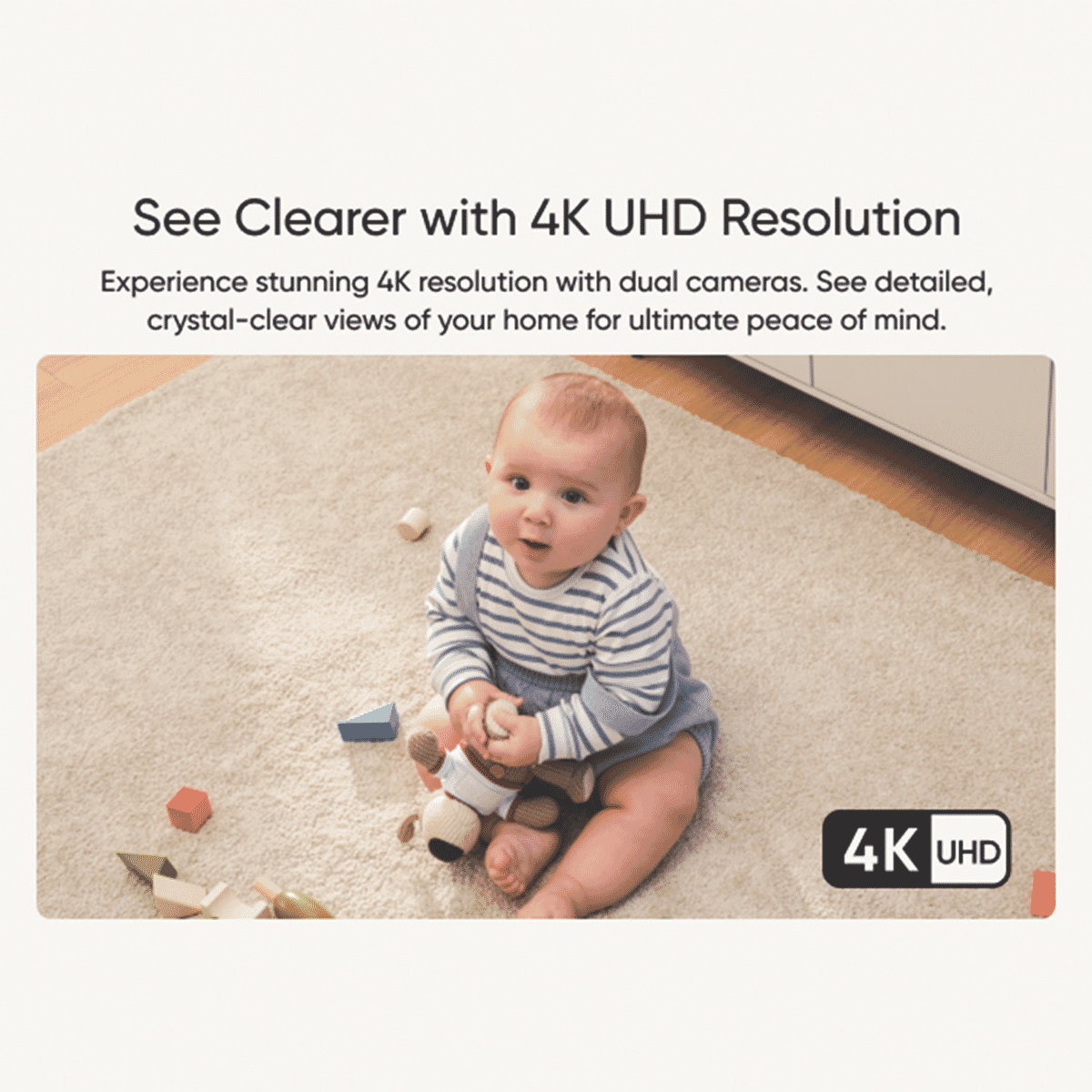 Bring crisp, clear security footage into your home with the eufy S350 Indoor Security Camera. This compact white camera delivers stunning 8MP 4K UHD resolution with advanced night vision, capturing every detail day and night. With sophisticated motion detection, you'll get instant alerts when activity is detected, and two-way audio ...more