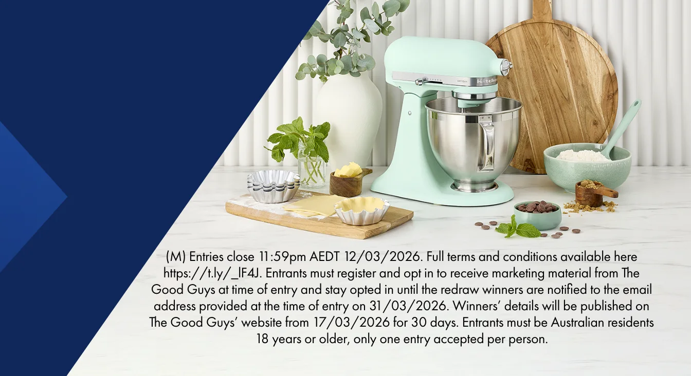Discover the best mixers, food processors, blenders, kettles and toasters with KitchenAid. Available online and in store at The Good Guys.