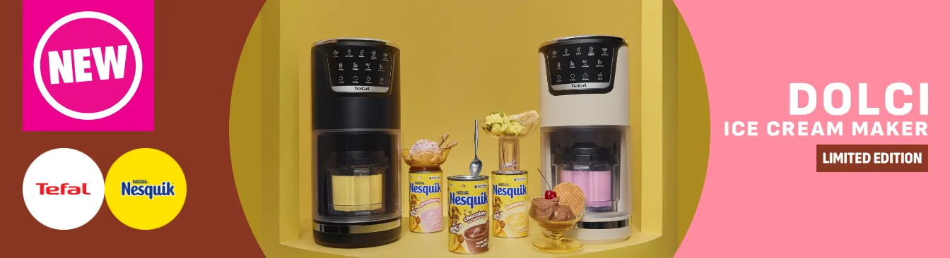 Mix, chill, repeat with the Tefal Dolci Ice Cream Maker. Unique 1-Step Perfector technology ensures you'll get a deliciously creamy and smooth dessert every time, and with 10 programs in one, you can make everything from sorbets and gelatos to milkshakes and frappes.