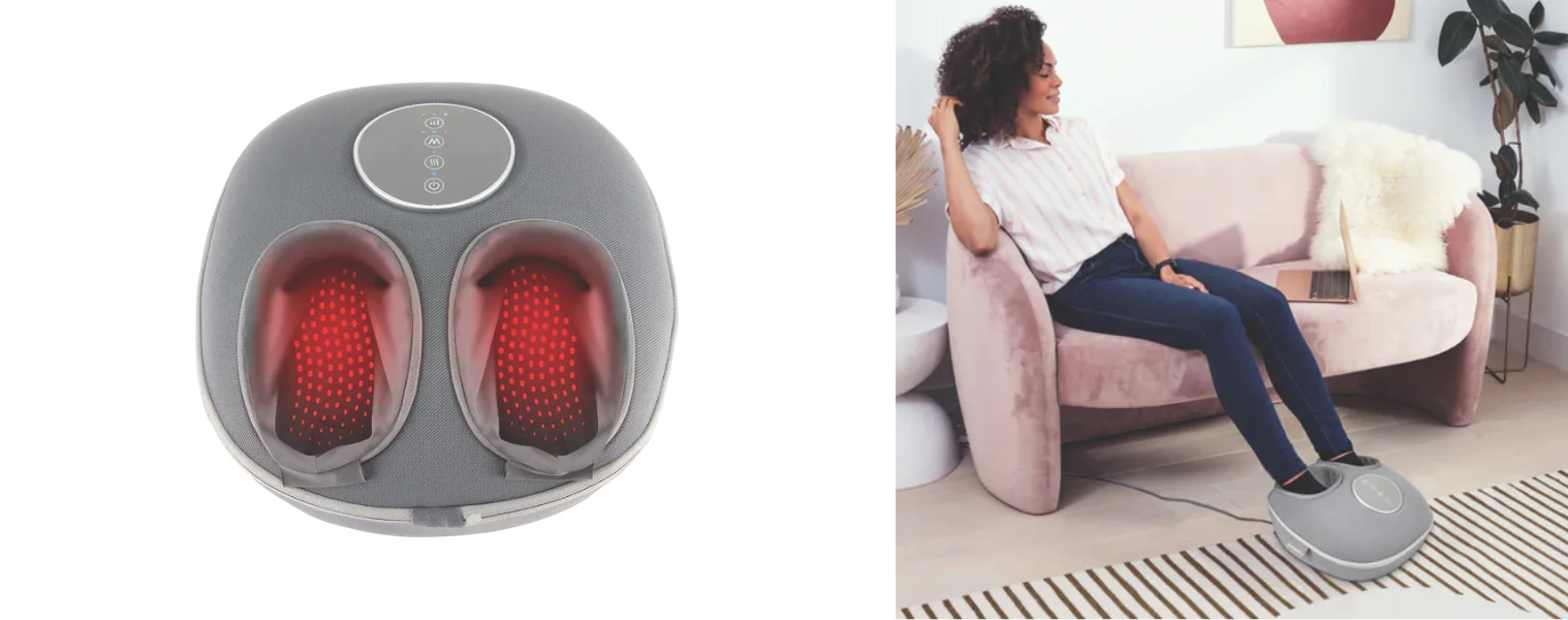 Regular exercise, drinking plenty of water and a healthy diet will set you on the right path, along with massage. “Prolonged sitting makes the muscles and joints stiff, affecting the range of motion and flexibility,” says myotherapist Phil Romeril of Melbourne Natural Therapies. “Remedial massage is an effective way to release the stiff joints and muscles and improve flexibility.” Soothe your muscles with the Homedics Shiatsu Air Deluxe Foot Massager Deep kneading shiatsu massage and heat soothes feet through four rotational heads and 12 massage nodes. Bliss while you sit.