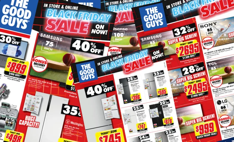 The Good Guys Black Friday catalogues are legendary … and Black Friday 2026 is no exception! You’ll find our catalogues crammed with deals you won’t want to miss … PLUS be sure to check out our special big brand Black Friday Catalogues for fantastic deals from Breville, LG, DeLonghi, Nespresso and more. There are great deals for every room in your home – read on to discover all the catalogues for our big sale event!