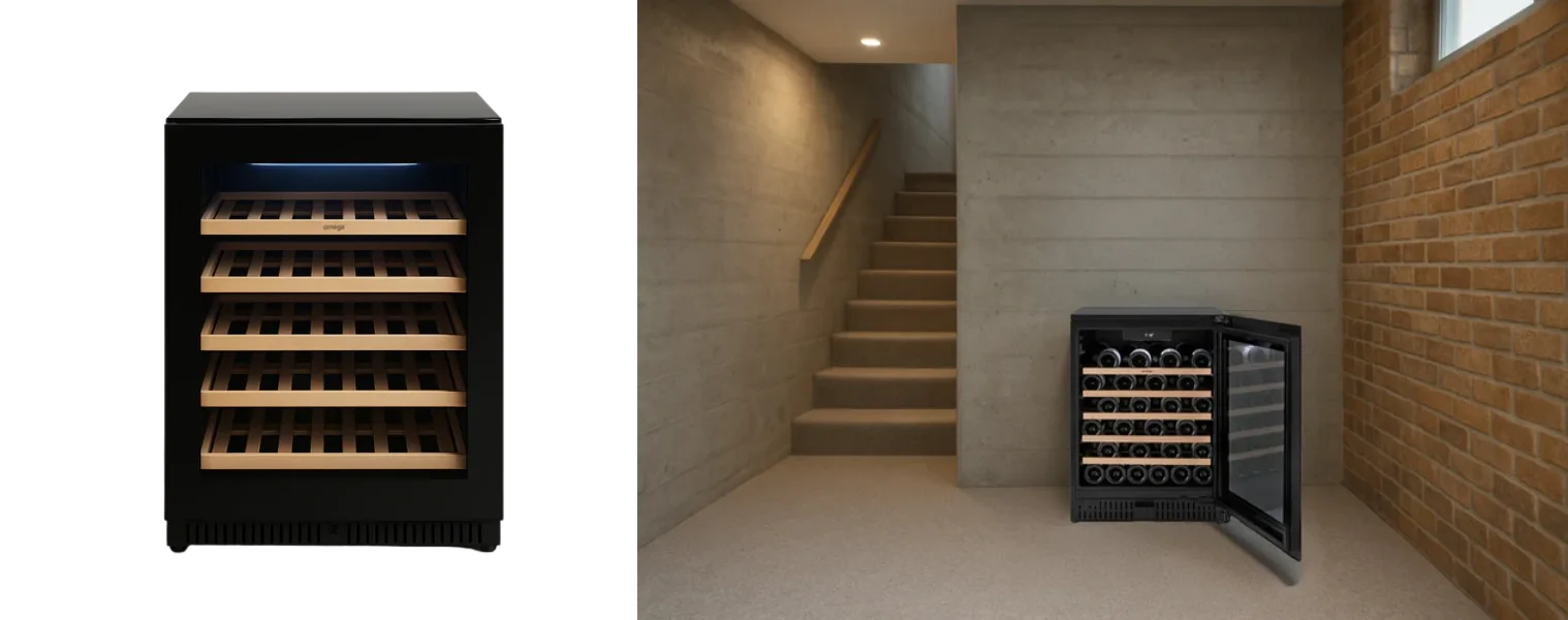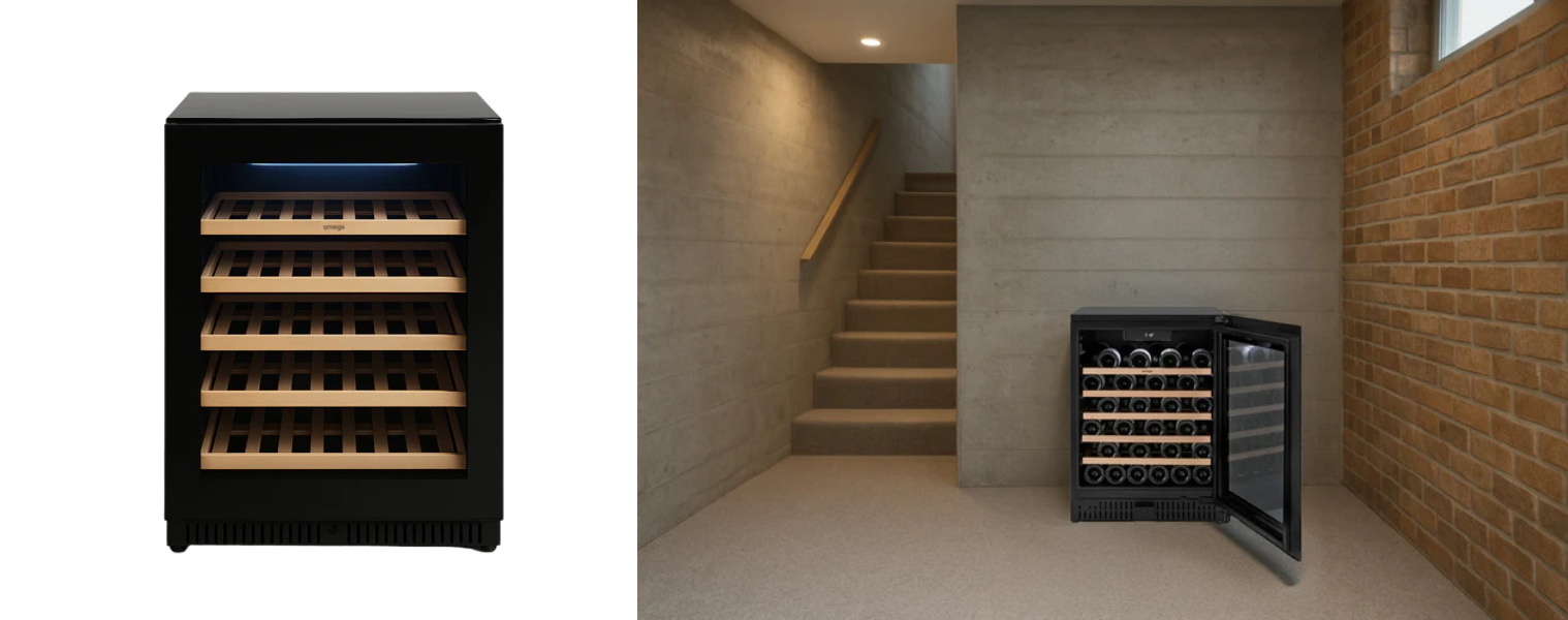 The new Omega 52 Bottle Single Zone Wine Cabinet features a sleek black finish and an impressive storage capacity to keep reds, whites and yourself in good spirits – worth the investment.